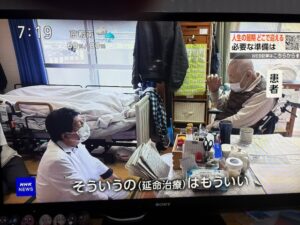 令和8年4月4日朝7時からのNHK「おはよう日本」の特集「自宅で最期を迎えたい」の中で一部ですが当院が往診先で患者さんにACP/人生会議の説明をしている場面が放映され、詳細はWEBに記載されています。